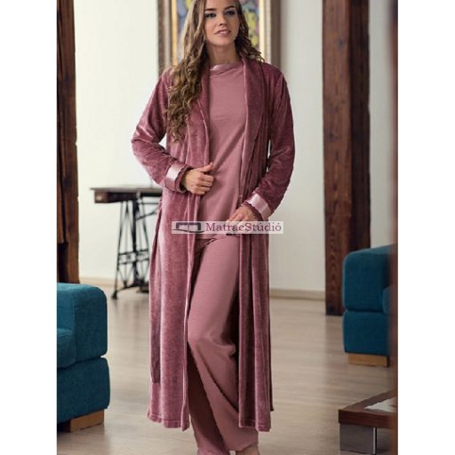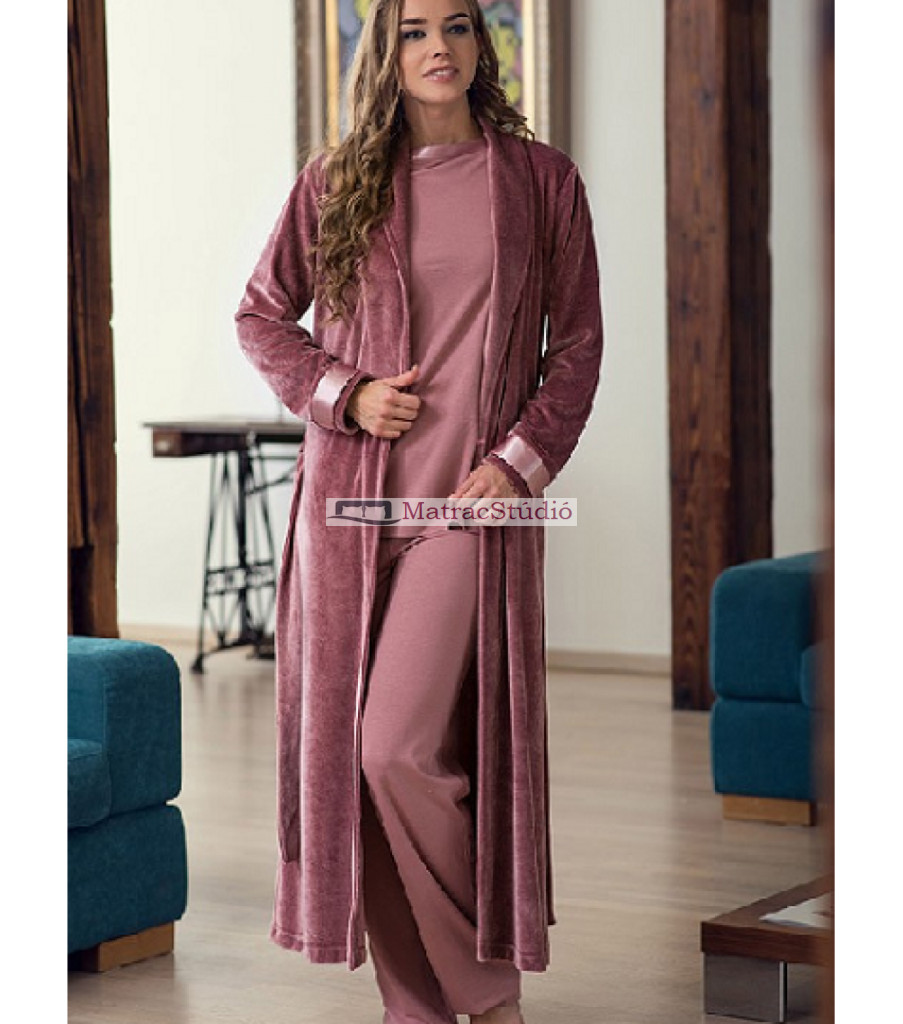 Belmanetti Zermatt különlegesen elegáns, könnyed alapanyagból készülő finom mályvarózsaszín vagy ezüst szürke női hosszú köntös sálgallérral, szatén szegéllyel már csak limitáltan elérhető.