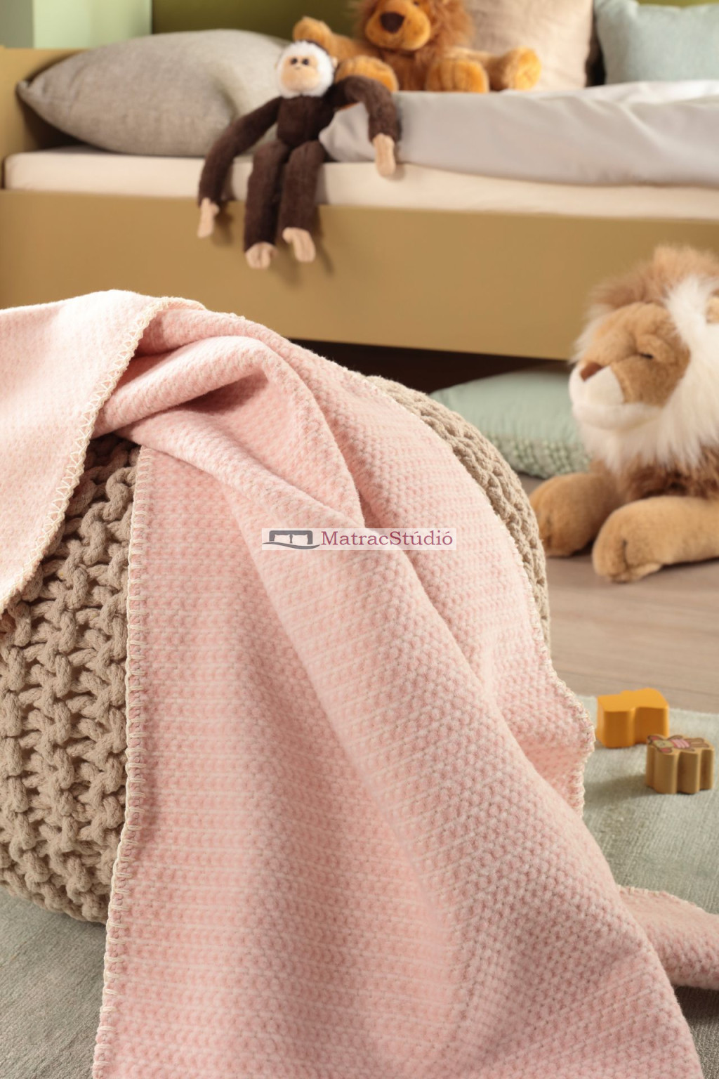 A Biederlack Baby-Kids kollekciójának bájos pasztellrózsaszín baba takarója prémium minőségű pihe-puha, prémium minőségű 100% pamutból készül. Gyengéden, puhán, biztonságot nyújtón, melegen öleli körbe a babákat.