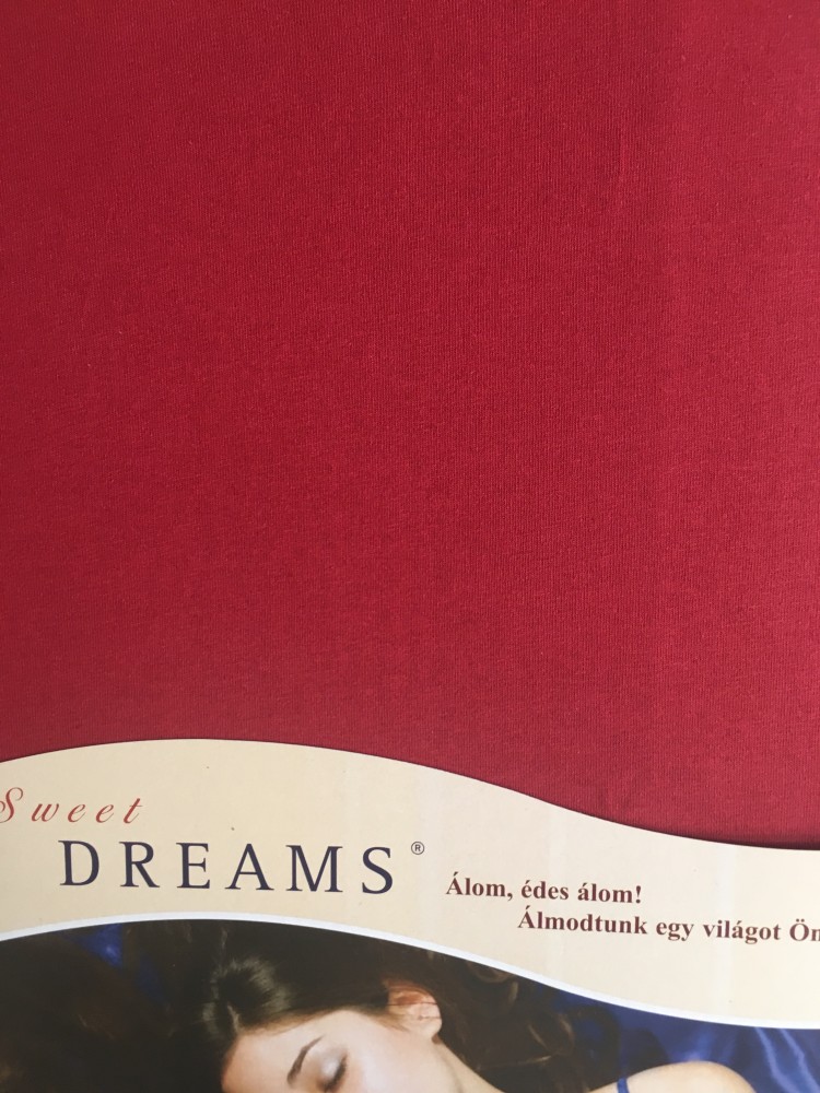 Mély, meleg piros színű, magas minőségű, 160 g/m2 sűrűségű 100% pamut jersey gumis lepedő elasztánnal.